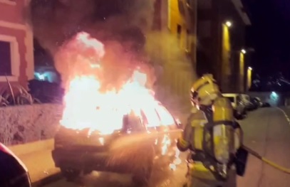 Los bomberos han tenido que intervenir para sofocar el incendio provocado en un vehículo que ha resultado totalmente calcinado esta pasada noche.