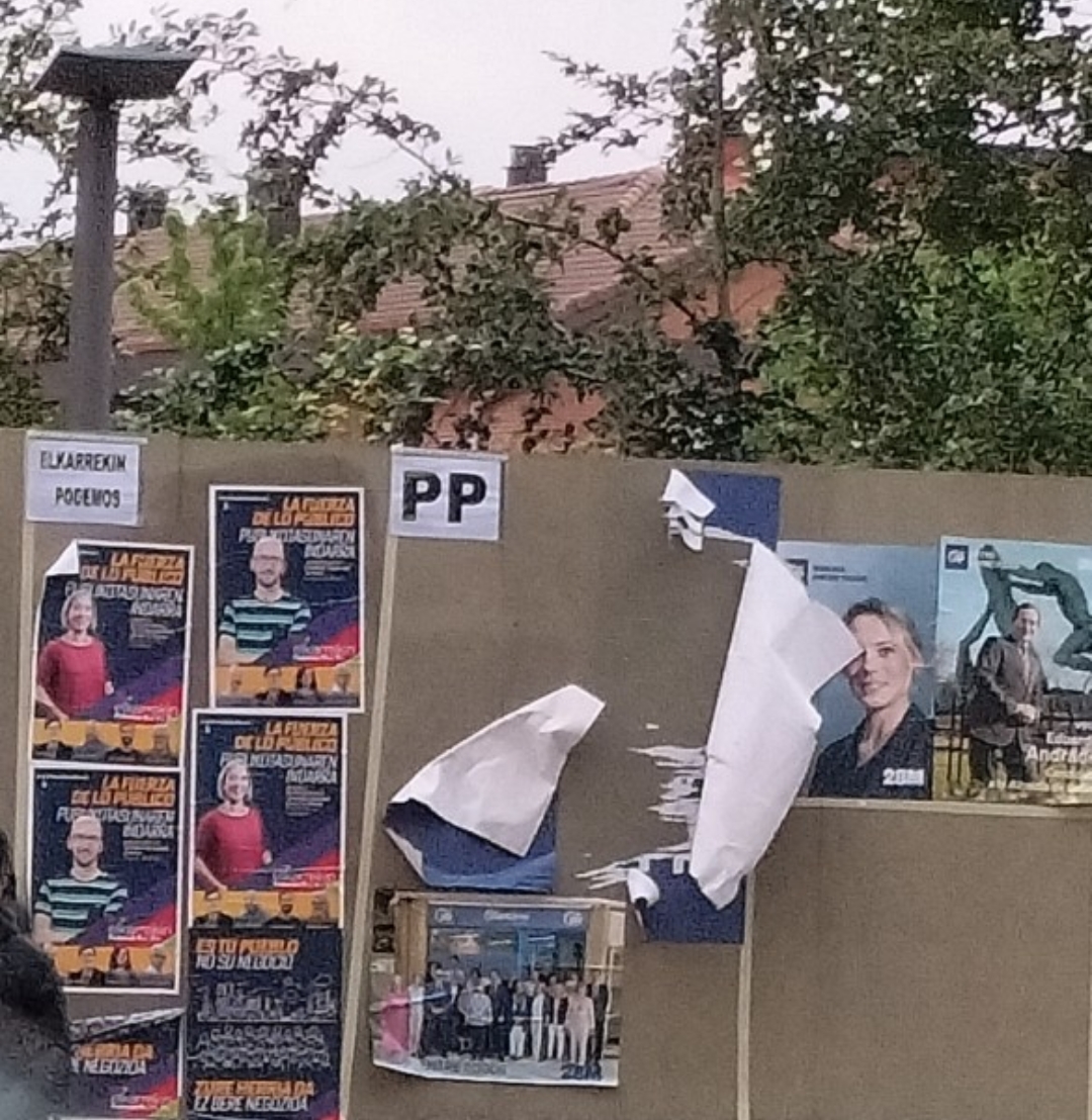 Los defensores de la «limpieza étnica a base del tiro en la nuca y la extorsión’ durante decadas pasadas, ponen en práctica en la actualidad la retirada de los carteles de los populares de los paneles electorales oficiales tal y como se ha podido comprobar en puntos como en el parque Gernika de Neguri o en la misma Plaza del metro de Algorta.