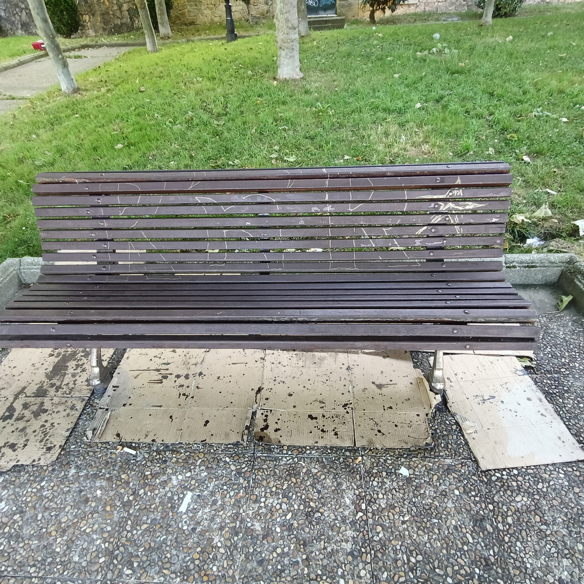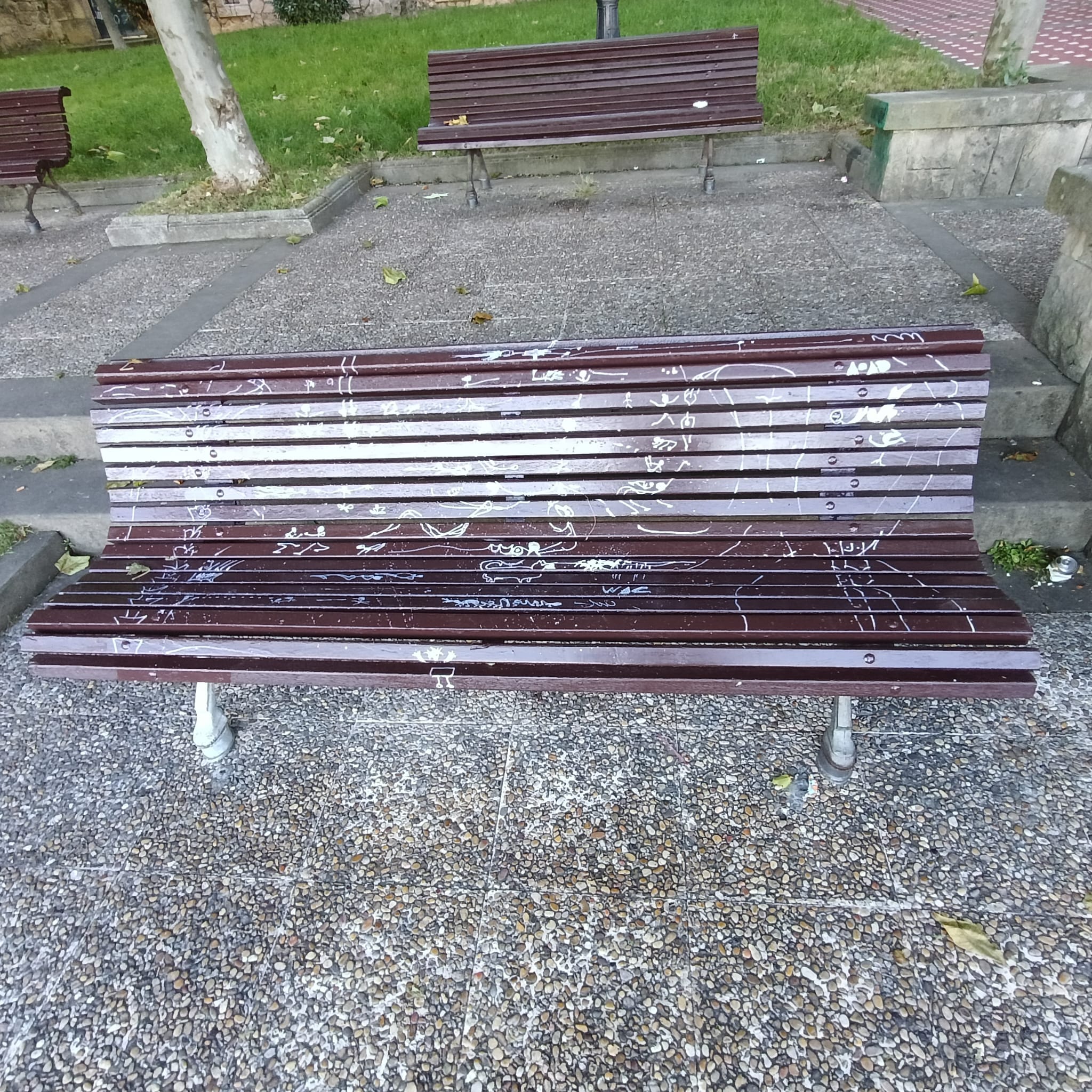 Los bancos recién esmaltados de la bancada inferior del parque de María Cristina no han durado ni un día intactos. Apenas 24 horas después de haber sido pintados, esta misma mañana un operario municipal se ha visto obligado a retocar varios de ellos tras aparecer con pintadas y signos de vandalismo realizados durante la tarde-noche de ayer.