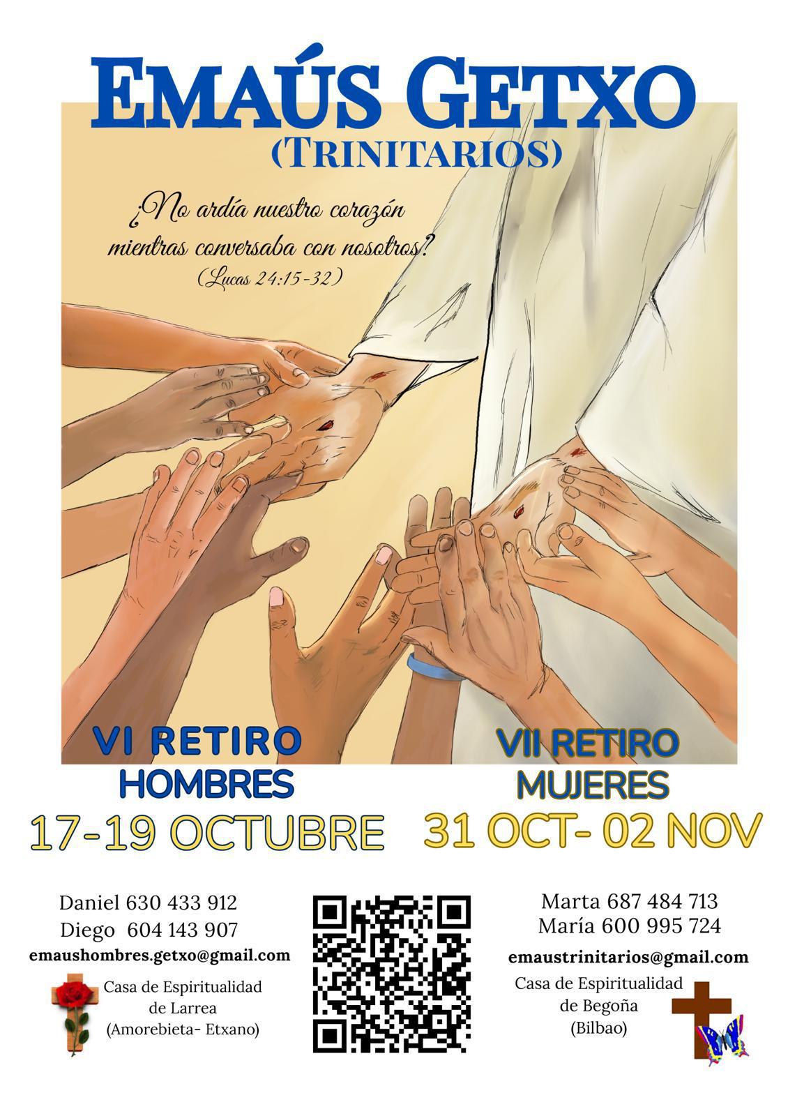 En la imagen compartimos el carteles con el código QR para inscribirse en los retiros de Emaús. Una cita abierta a quienes deseen acercarse a la propuesta espiritual y comunitaria de los Padres Trinitarios.