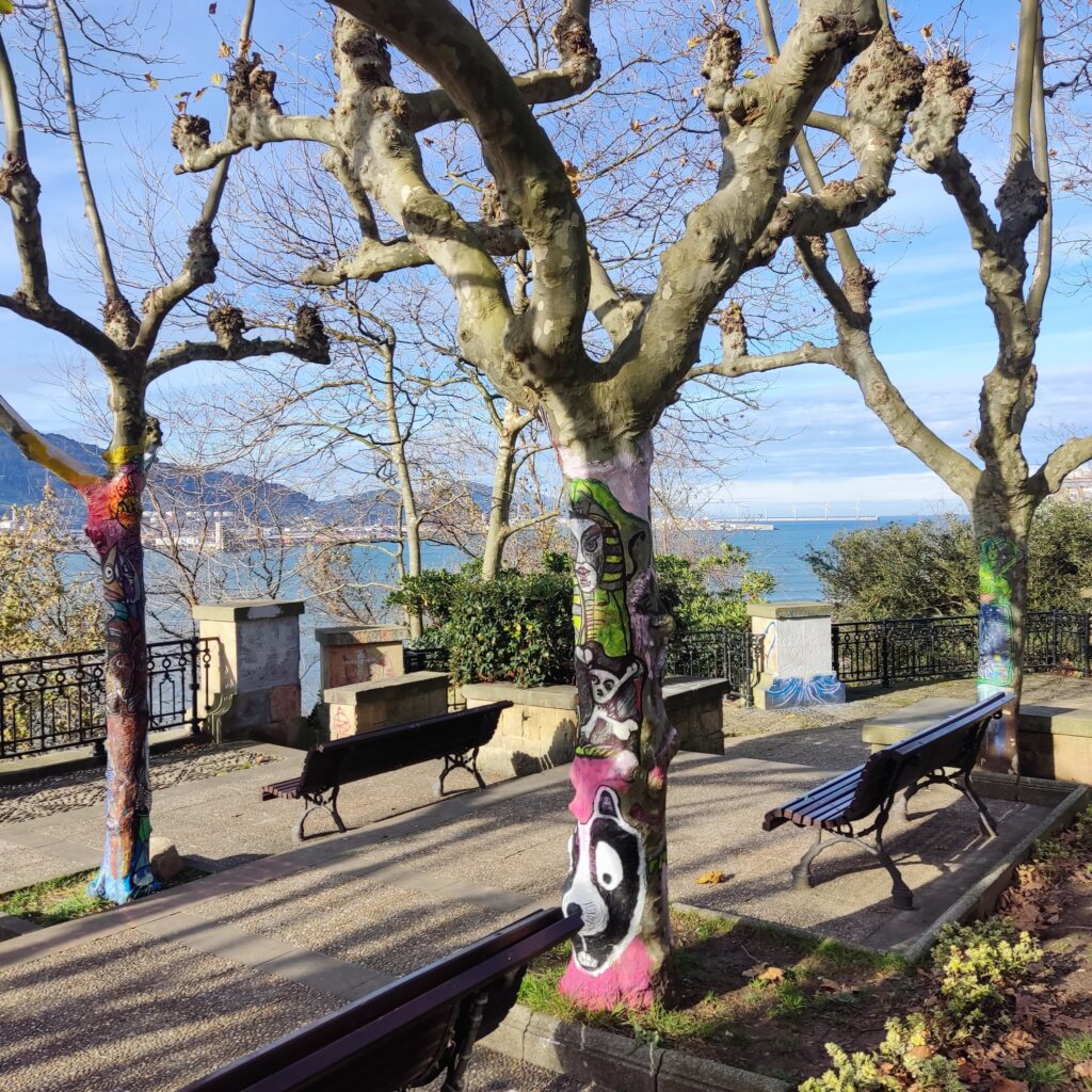 El hombre, conocido entre residentes de la zona por su presencia habitual en el barrio, fue fotografiado mientras pintaba sobre el tronco de uno de los árboles. De acuerdo con testigos, la misma persona suele desplazarse habitualmente por Algorta, anteriormente utilizando un patín impulsado con un palo y actualmente mediante una bicicleta.