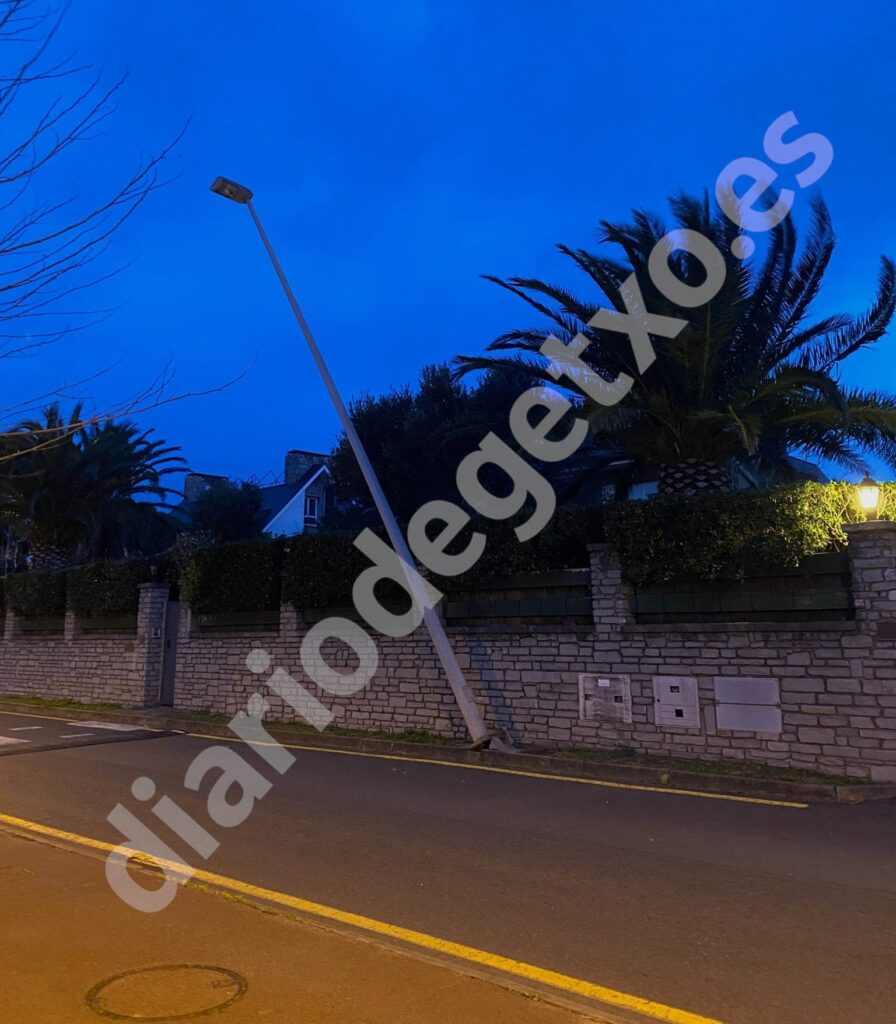 Los vecinos siguen pasándonos más imágenes de distintas situaciones provocadas por el viento en Getxo durante las últimas horas. En el Camino al faro de la Galea n34, una farola inclinada con riesgo de caída.