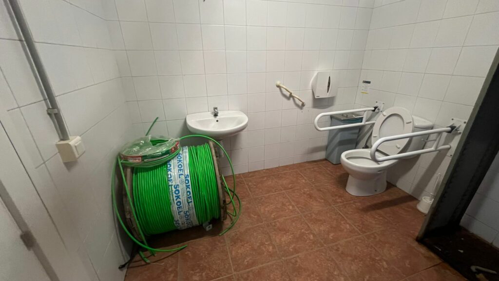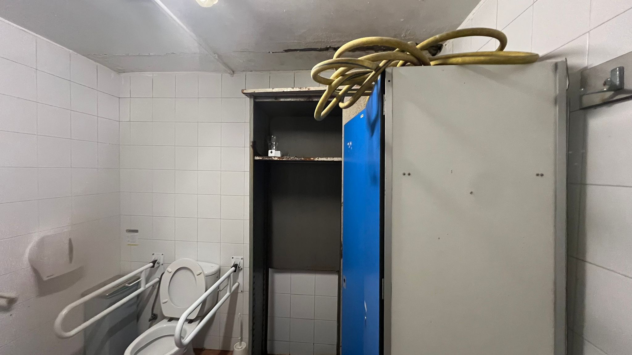 “Sin papel para limpiarse después de hacer necesidades fisiológicas y con elementos de obra, armario oxidado y casi podrido, mangueras, cables…”, describe la ciudadana.