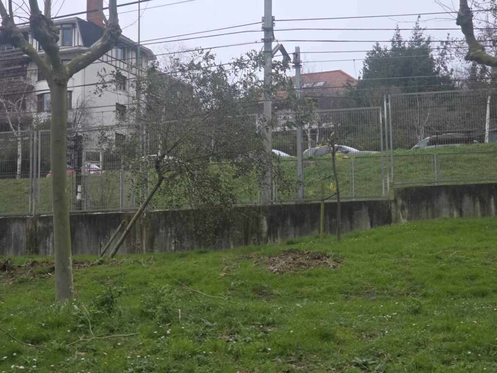 Hace como un mes y medio vinieron los jardineros a quitar los árboles que había, ya que el Ayuntamiento no los cuida, como ya sabemos, y al final el Metro les ha obligado. Estuvieron unos días trabajando y ya no han vuelto. Se ha quedado todo a medias; incluso hay árboles que los han cortado pero no los han sacado, ni tampoco han puesto otros árboles que decían que iban a poner.