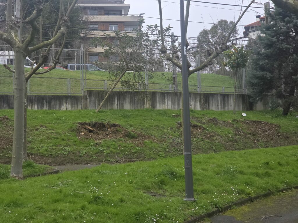 Una vecina se ha puesto en contacto con el Diario de Getxo para denunciar el estado en el que ha quedado el parque junto a la estación del Metro de Neguri tras la retirada de varios árboles. Según relata, los trabajos iniciados hace más de un mes permanecen inacabados, generando una situación de abandono que, asegura, afecta tanto a vecinos como a niños y mascotas.