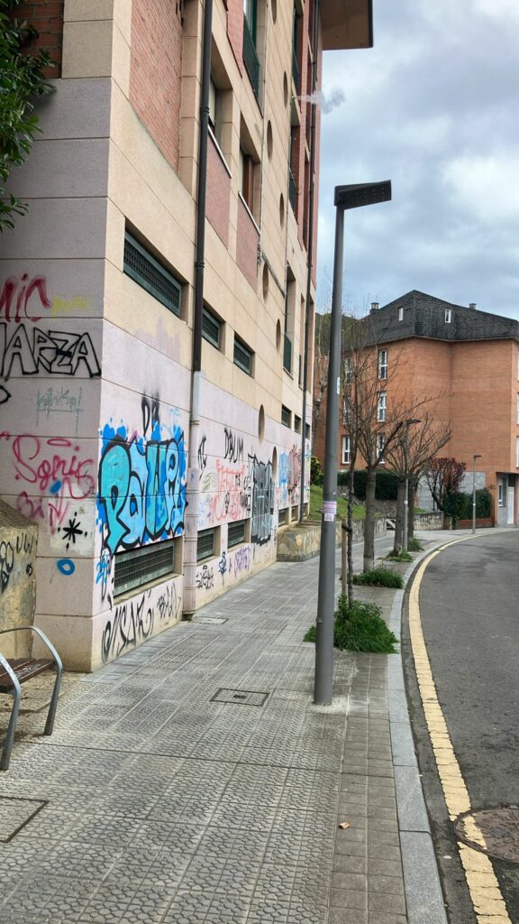 Según las imágenes remitidas, el entorno presenta una imagen deplorable con pintadas en paredes y mobiliario urbano, lo que transmite una sensación de dejadez en un espacio muy frecuentado por vecinos y familias.