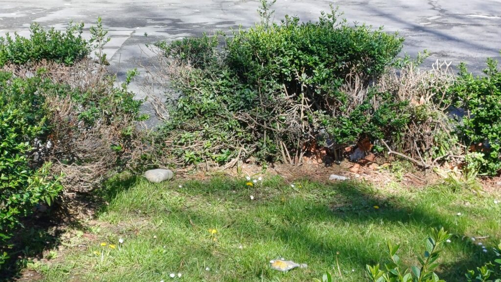 La ciudadana afirma que, pese a las quejas trasladadas al consistorio, “todo sigue igual”. Entre los problemas que señala se encuentra la vegetación sin podar. “El árbol ya cruza la calle con sus ramas y los setos secos siguen causando heridas a los viandantes”, explica.