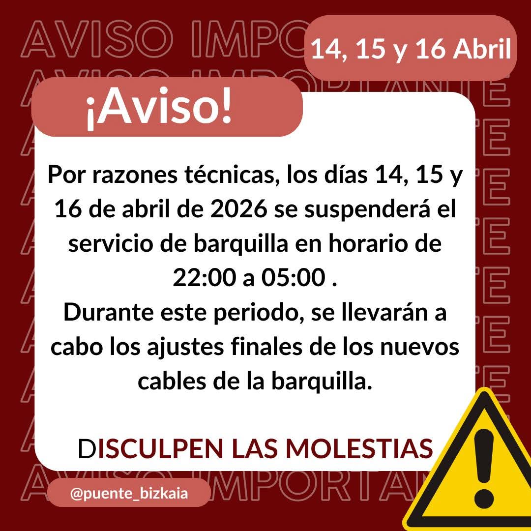 Según han informado fuentes del propio puente, estos trabajos obligarán a suspender el servicio durante las noches del 14, 15 y 16 de abril, en horario de 22:00 a 05:00 horas.