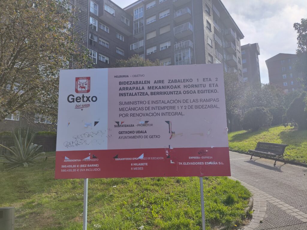 Seis meses después de que se repararan las rampas mecánicas de Bidezabal, que estuvieron sin funcionar completamente durante aproximadamente un año y medio, el cartel informativo sobre los trabajos y su coste continúa instalado en la zona, a la vista de cualquier persona que transite por el lugar.