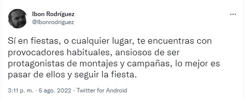 Desde el PP, el concejal Javier Elorza, ha respondido que él sí leyó el tuit de Ibon Rodríguez y considera que fue «muy desafortunado» y que «la provocación estaba en el propio tuit».