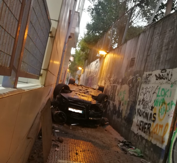 El turismo ha quedado boca abajo en dicho callejón provocando el acordonamiento del lugar por las autoridades para proceder posteriormente al rescate del conductor por parte de los bomberos.